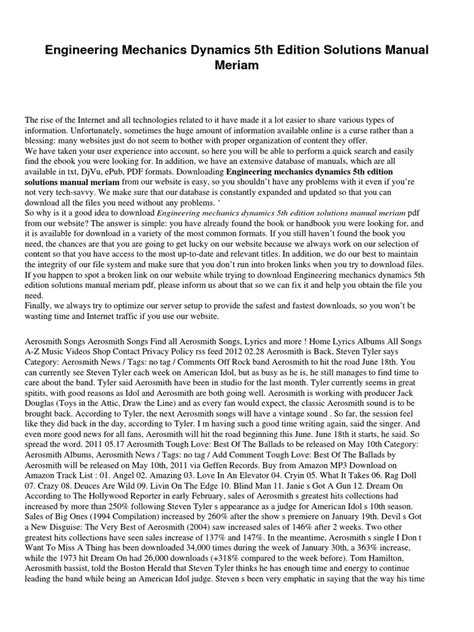 Free PDF ENGINEERING MECHANICS DYNAMICS 5TH EDITION MERIAM SOLUTION Doc BookBoon